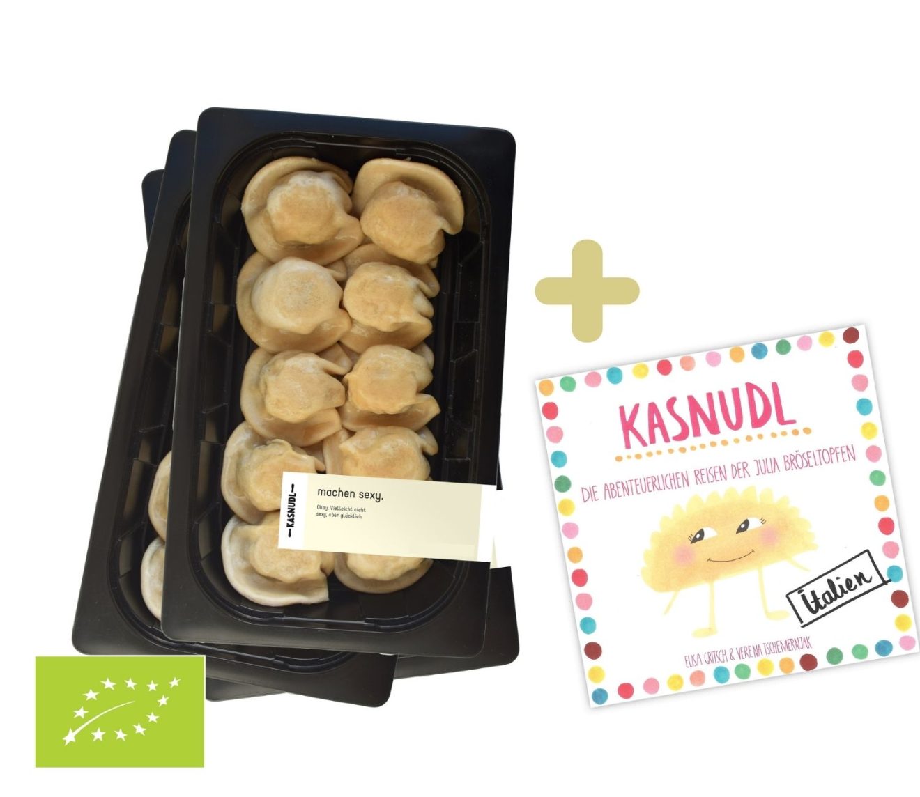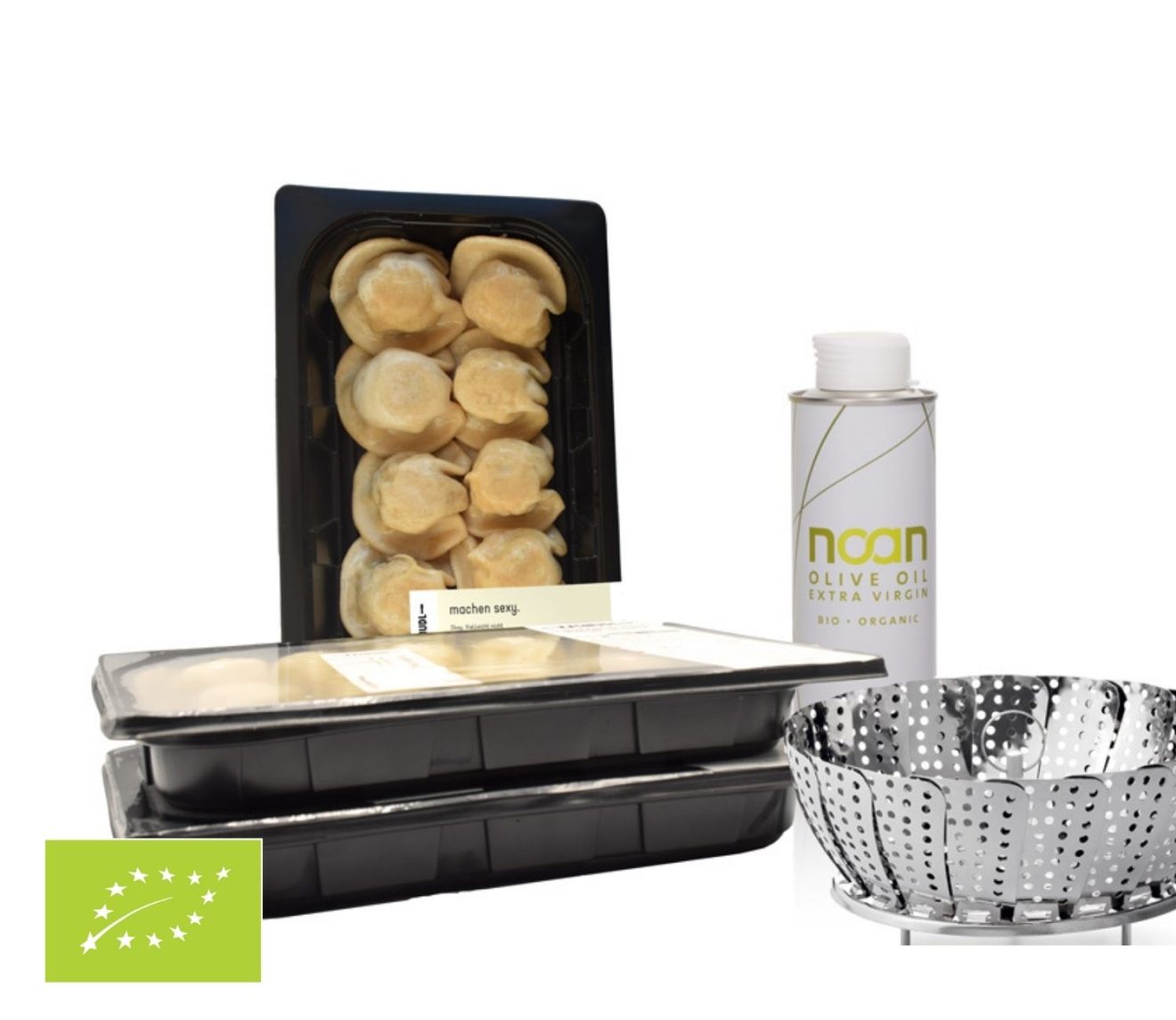 Bei unseren Bio Kennenlern-Paketen sind immer 30 Stück Teigtascherl in 3 verschiedenen Sorten und unterschiedliche Zusatzprodukte enthalten. Ganz einfach mit einem Klick inkl. eines vergünstigten Preises bestellen. Ideal zum Probieren und Verschenken ☺️.