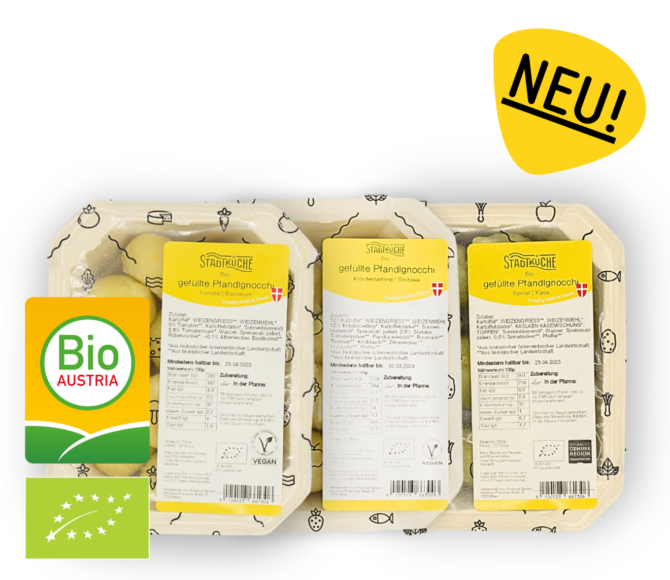 Und weil wir uns ungern auf Duos beschränken, haben wir für die Gnocchi Liebhaber in der Stadtküche Familie, auch ein Trio-Paket erstellt. So kann man ganz einfach mit einem Klick alle drei Sorten der Bio Pfandl-Gnocchi genießen.